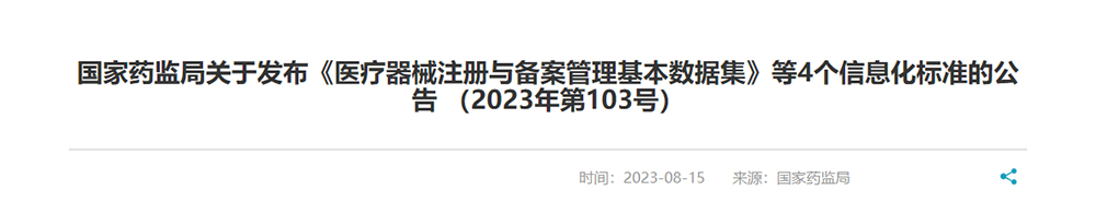 國(guó)家藥監(jiān)局關(guān)于發(fā)布《醫(yī)療器械注冊(cè)與備案管理基本數(shù)據(jù)集》等4個(gè)信息化標(biāo)準(zhǔn)的公告..